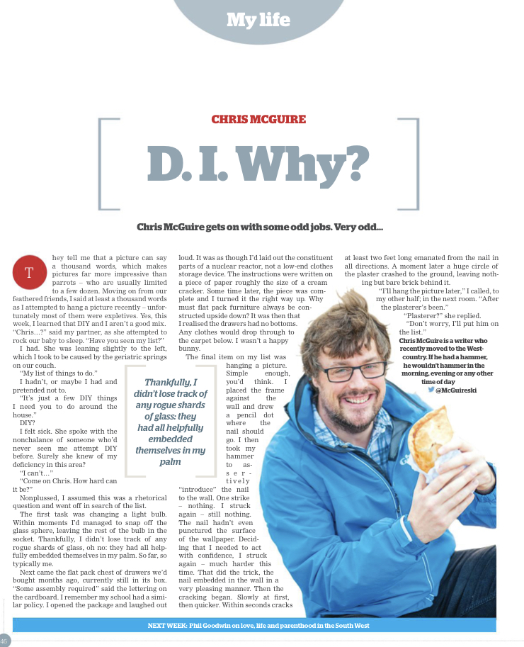 Here’s a piece I wrote for Western Morning News, all about the trials and tribulations of doing it yourself…