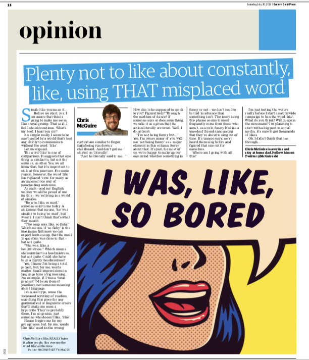 Here’s my new piece for Eastern Daily Press, all about my frustrations with the misuse of the word ‘Like’.