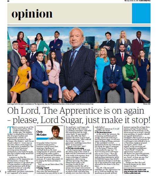 Here it is, my latest column for Eastern Daily Press all about The Apprentice.