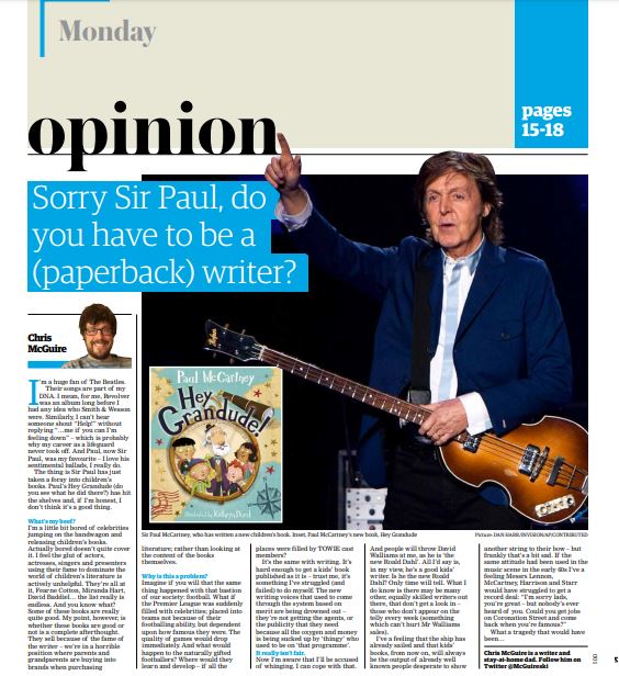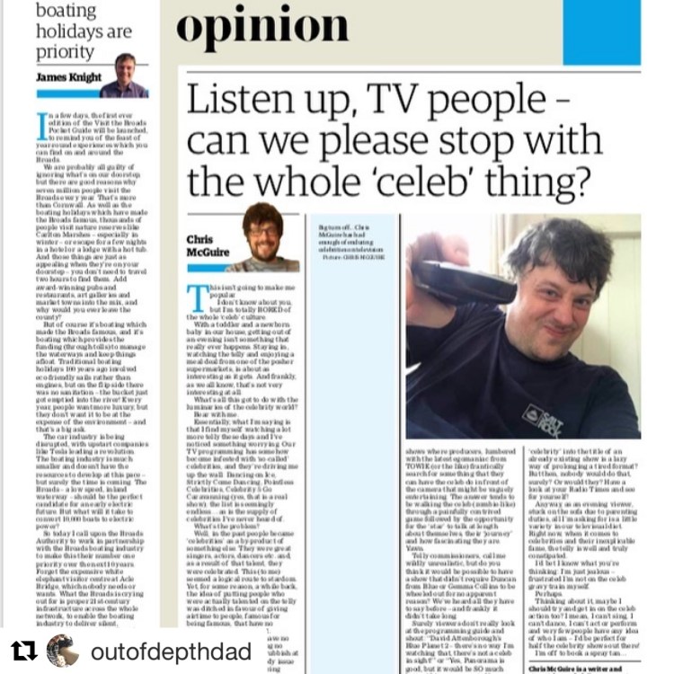 Chris McGuire, Eastern Daily Press – “Listen up TV people – can we please stop with the whole celeb thing?”