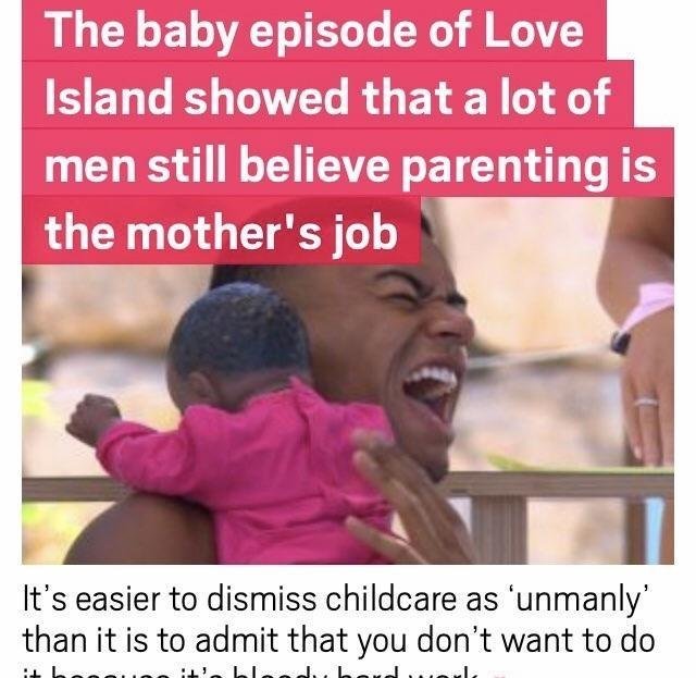 “I’m a stay at home dad, and while I’m usually tucked up by 9pm — ready to deal with a two-year-old son who thinks nothing of waking the house at 5am — last night I watched Love Island, enticed by the prospect of seeing how the male islanders fared in the infamous baby challenge. When a task is made to look easy, that’s how you know someone is really good at something. Last night, the Love Island fellas made fatherhood look hard. Am I being too tough on this collection of walking, talking, Ken Dolls who had seemingly fathered plastic babies? I don’t think so. They made it look hard because, frankly, it is.”