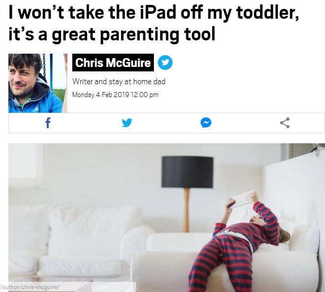 Chris McGuire Metro.co.uk: ‘I won’t take the iPad off my toddler, it’s a great parenting tool’.